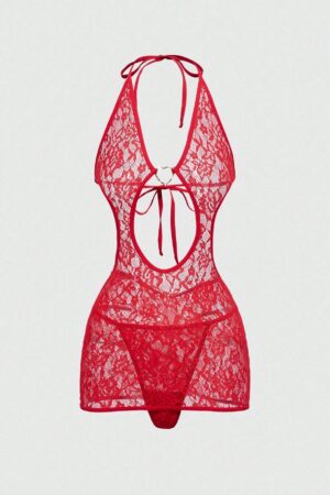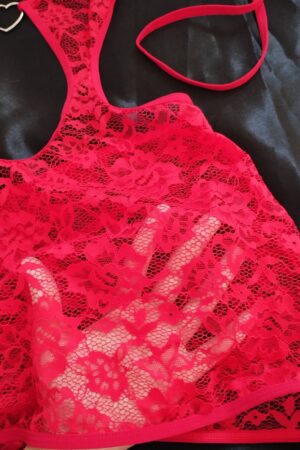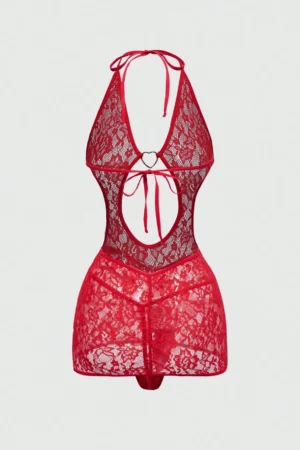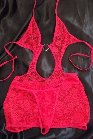 Este babydoll combina la sencillez con la sensualidad, de blonda elastica, anudable en el cuello y espalda con detalle de corazon metalico en el pecho. ♡ Incluye hilo a juego.