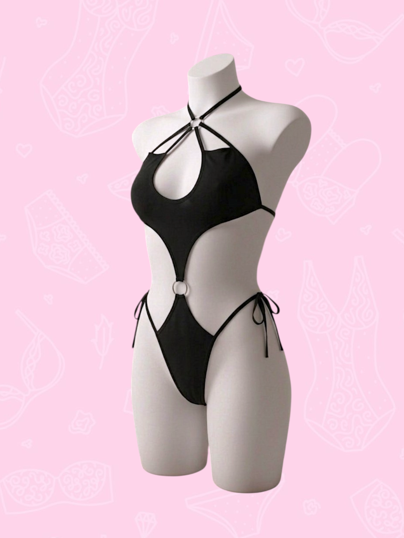 Body super sexy elaborado en microfibra elástica con detalles en aros metálicos. Se amarra y ajusta de cuello, espalda y cadera. La parte de atrás es tipo semihilo. La tela y las tiras estiran así que llega desde XS hasta L.