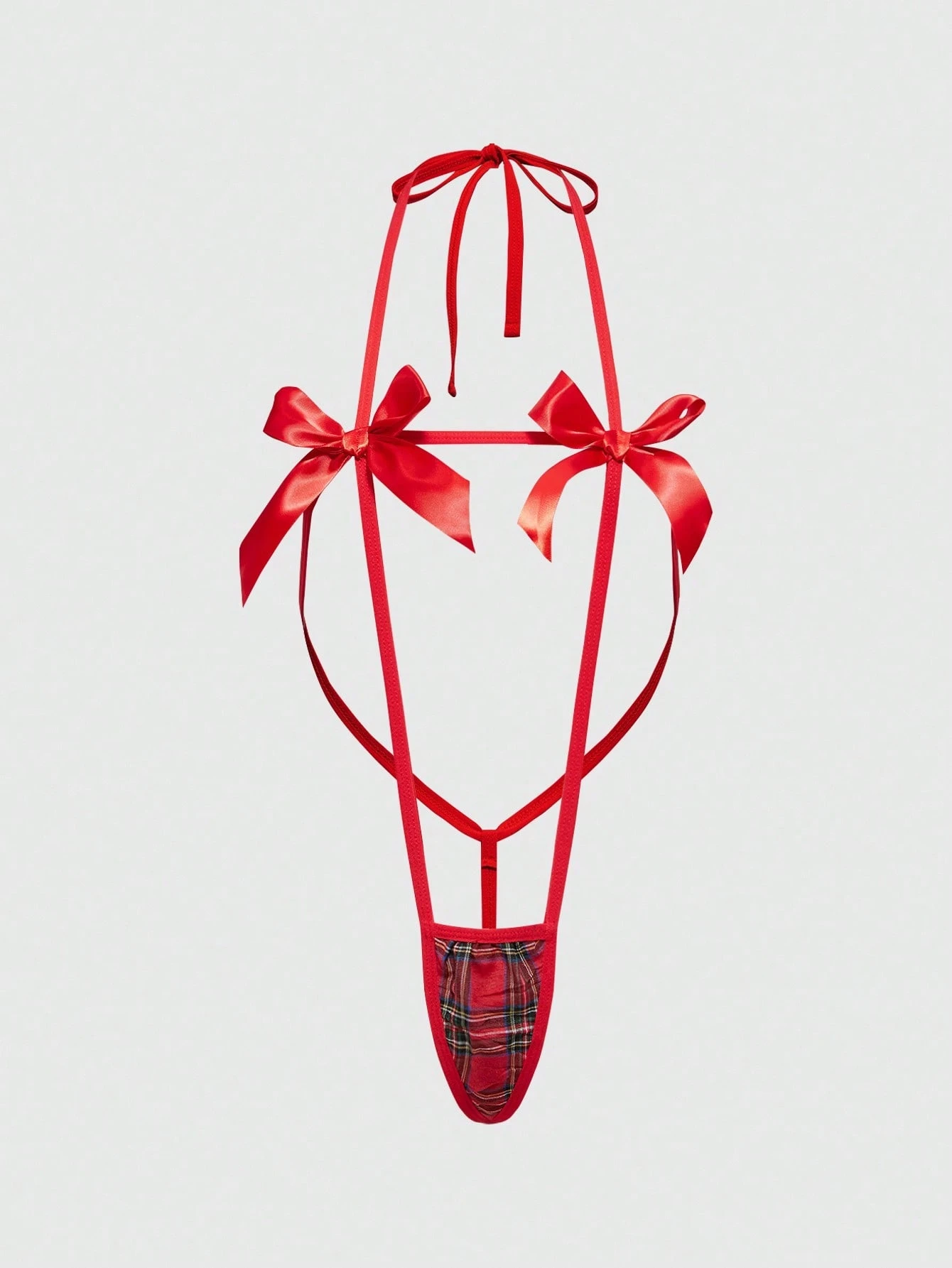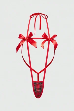 El regalo ideal para el que no pide mucho ;). Este body tapa JUSTO lo necesario, ni mas ni menos. Con grandes lazos satinados para los pezones y un micro hilo en tela de cuadros, genera mucho calor de solo verlo.