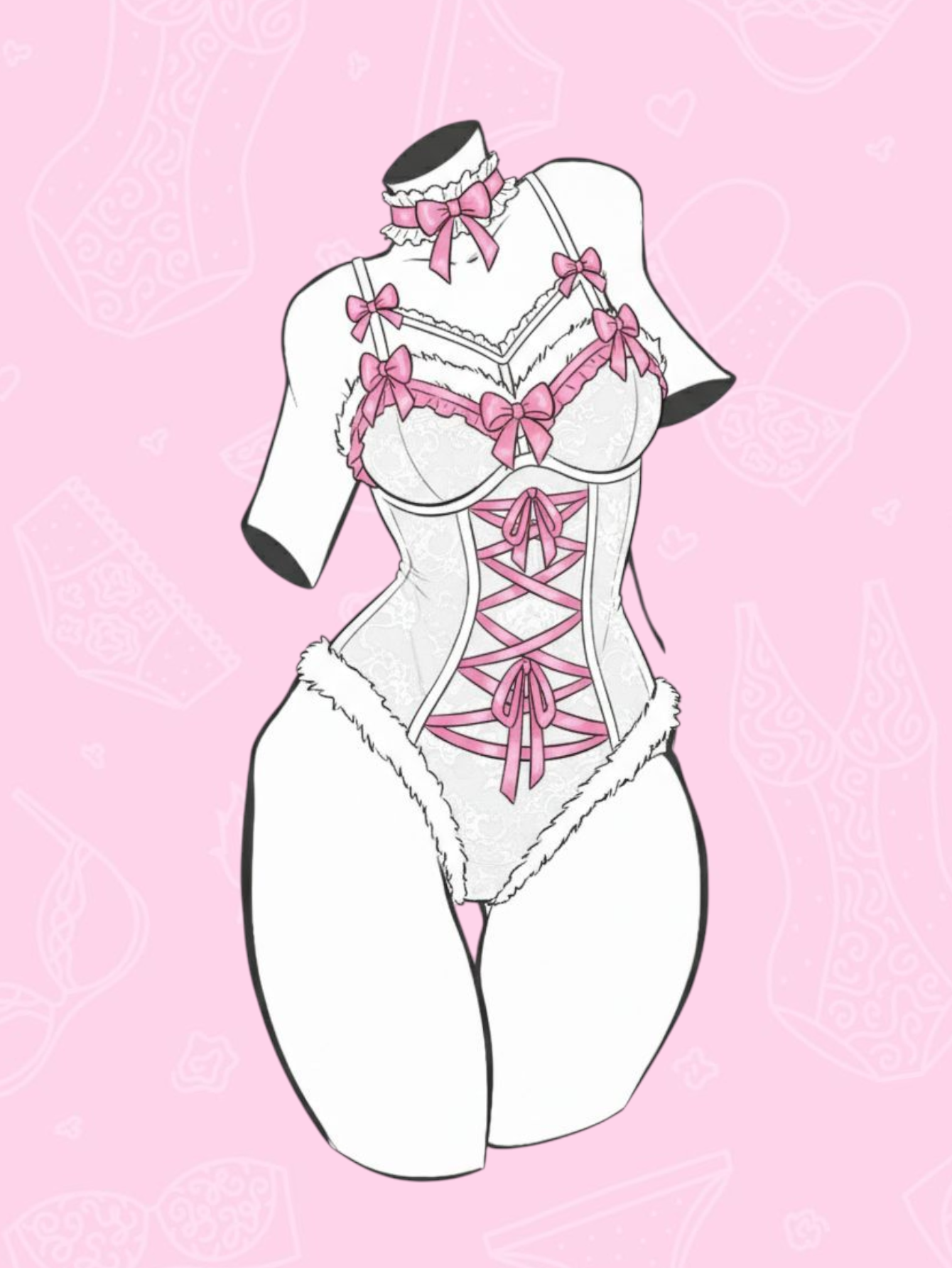 Una representacion de lo adorable hecho body. Elaborado en blonda elastica blanca con detalles de peluche super suave y lazos satinados rosa en contraste. Con su choker a juego para dar el completo vibe kawaii