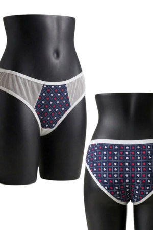 Tu pantaleta, panty, braga (o como te guste decirle) de uso diario perfecta esta aqui ❤️ Con corte medio, ligeramente «cheeky» en la parte trasera y con detalles que te haran sentir ademas de comoda, hermosa 💋 En una combinacion perfecta de malla elastica traslucida y licra de corazones, con bordes de sesgo elastico suave.