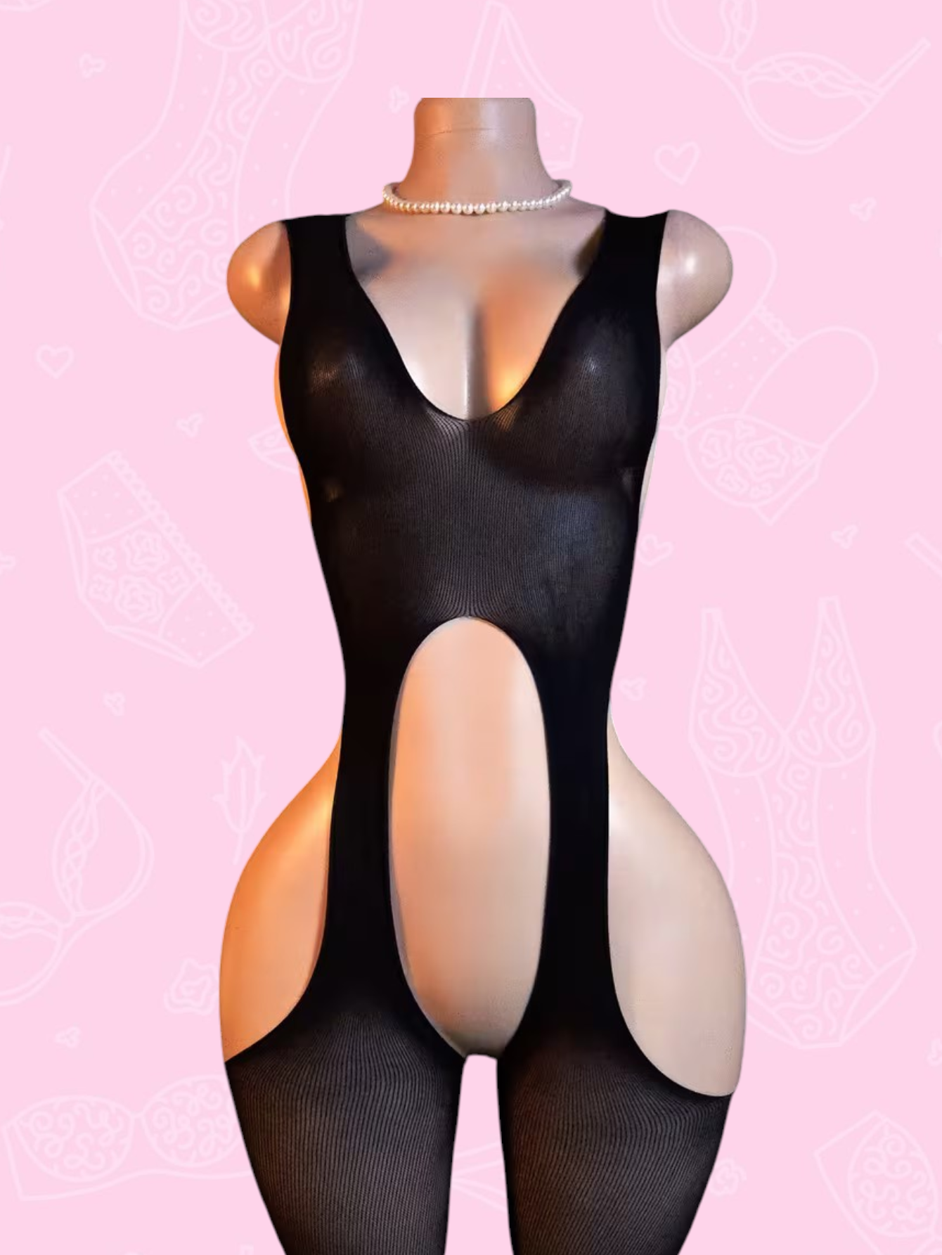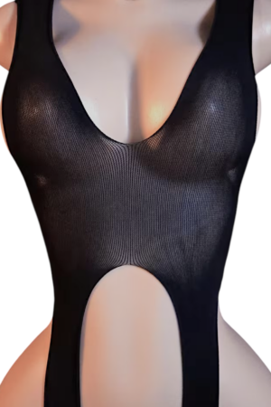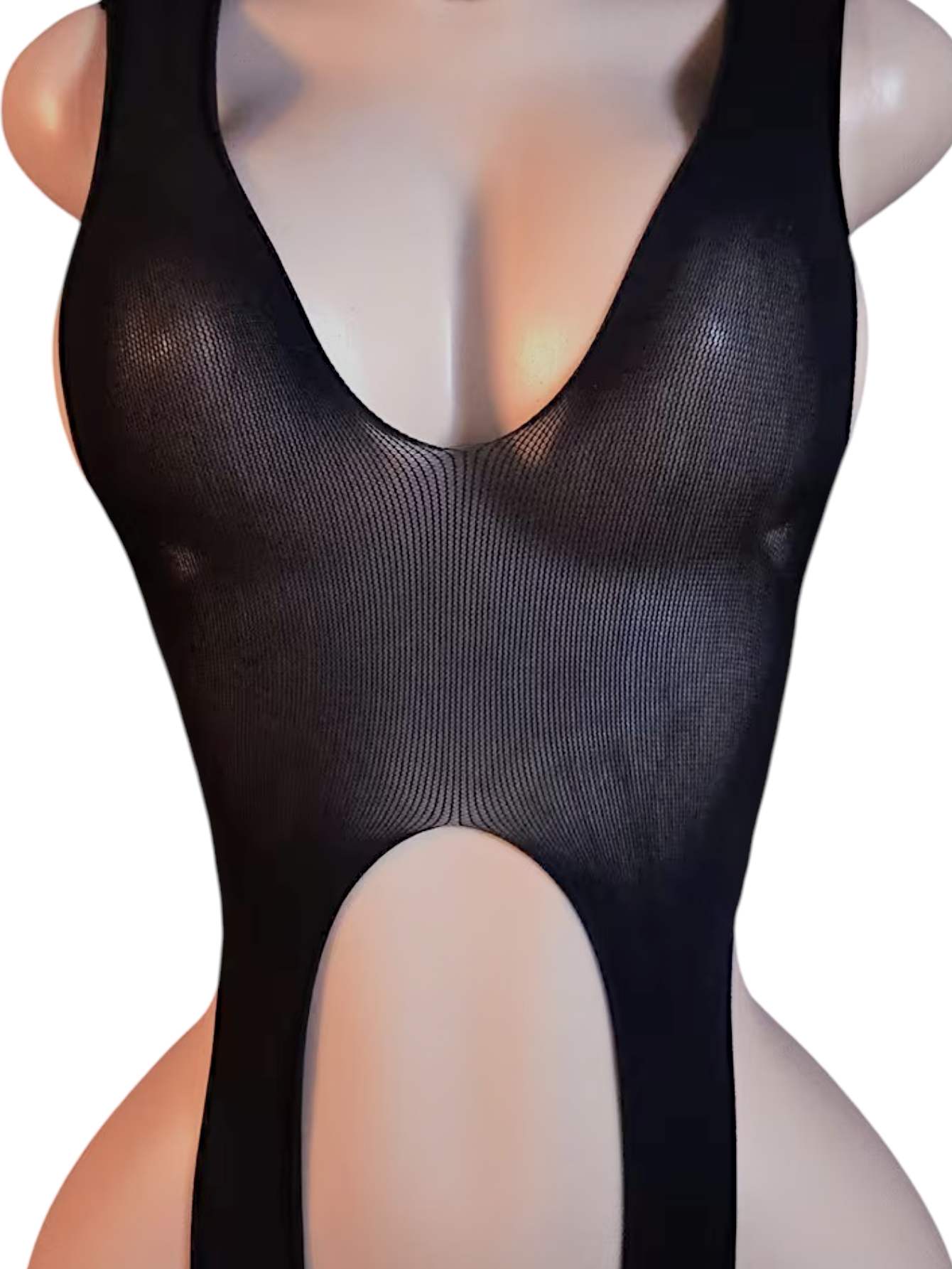Body de malla extra sexy para realzar tu figura. Sin mangas, escote redondo bajo con abertura en laterales y frente/posterior. Pie de la media cerrado.