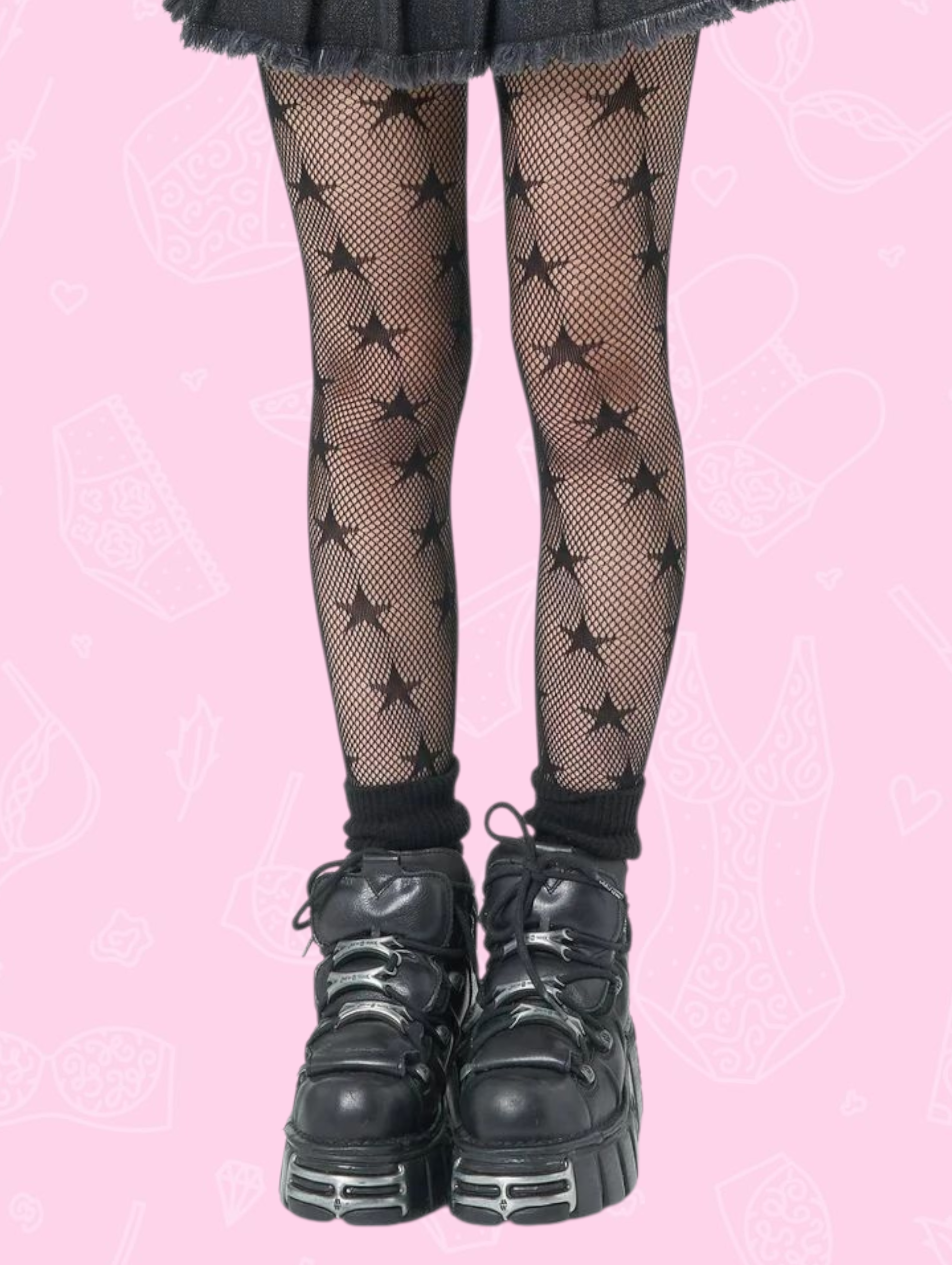Medias de malla hasta la cintura completas de cintura a pie con estampado de estrellas. El material es malla elastica y son talla unica extra ajustable. Ideales para generar un efecto visual sexy y completar un outfit