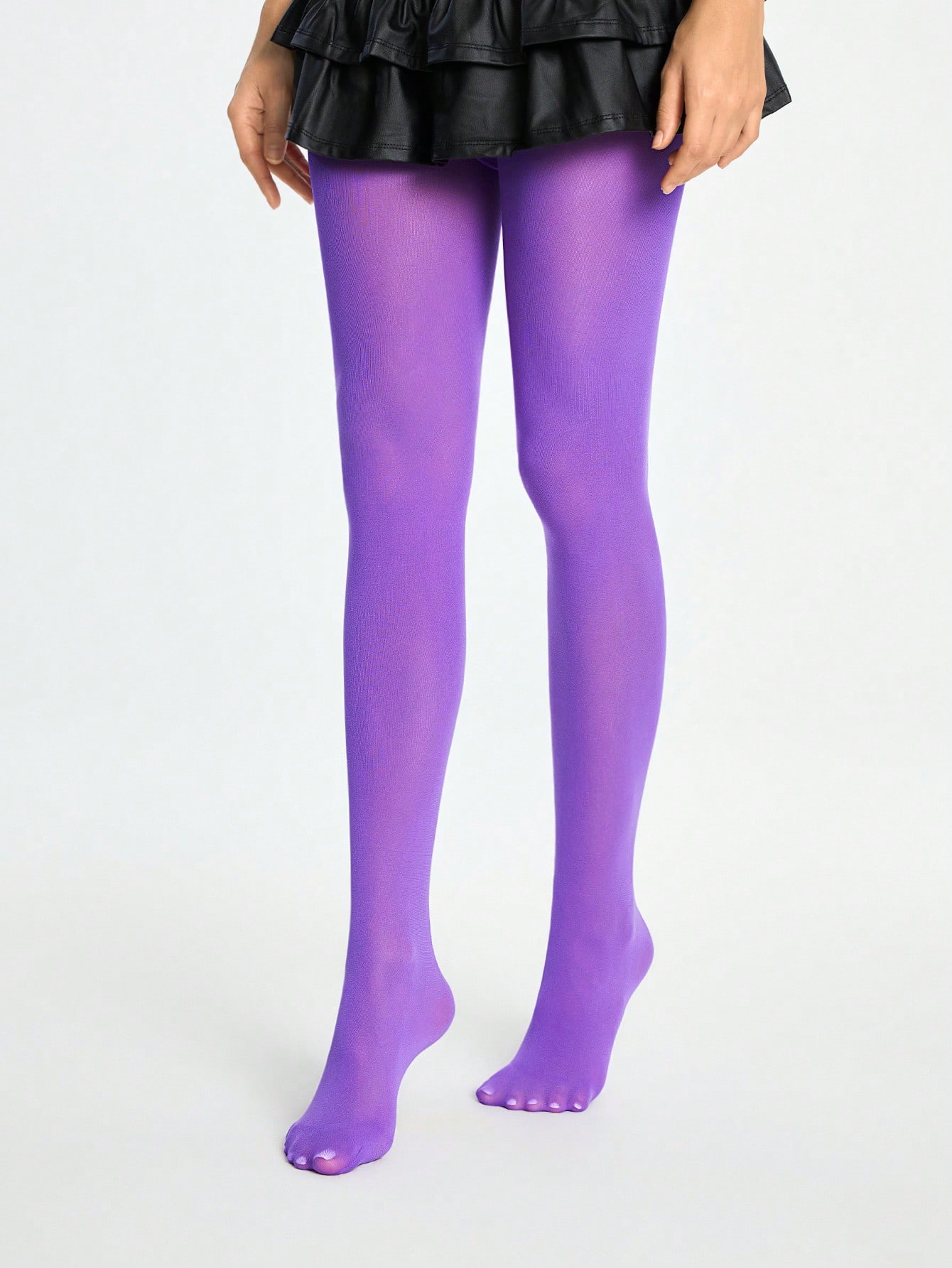 Pantimedias o medias panty de nylon gruesas unicolor morado ideal para combinar con faldas o vestidos, llegan a la cintura y son de pie cerrado.