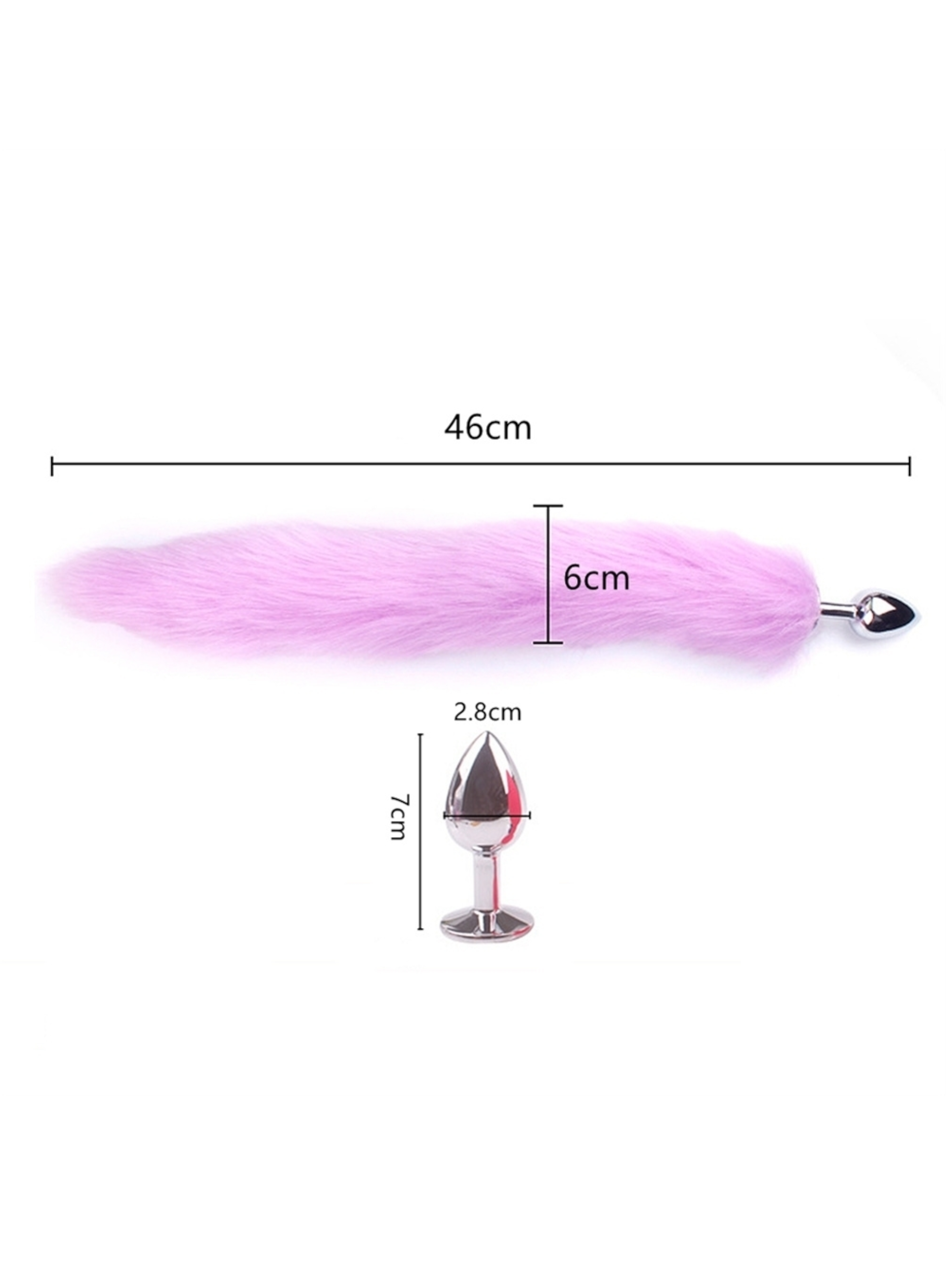 Largo de la cola (parte peluda): 40cm | Largo del plug: 6cm – Diametro del plug: 2,8cm