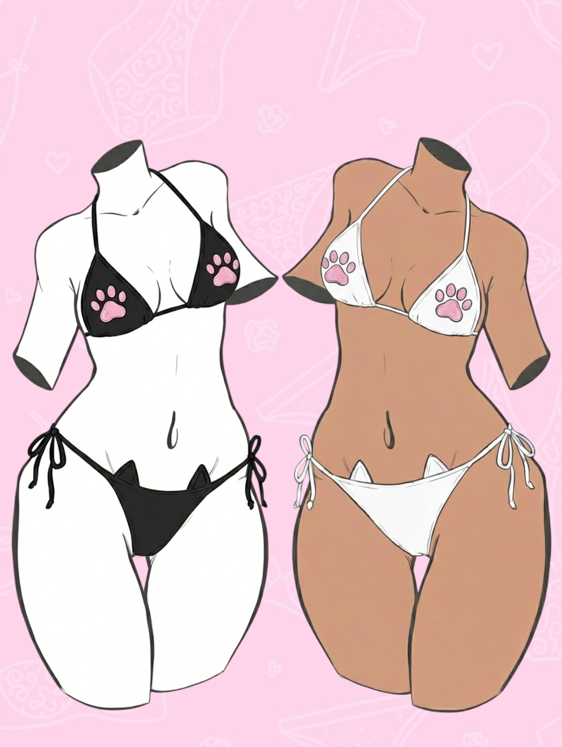 Set con top estampado de patitas de gato y panty con detalles de orejitas. Elaborado en licra, con bordes en sesgo elastico mate. Ajustable de cuello, espalda, panty. Estampado en DTF.