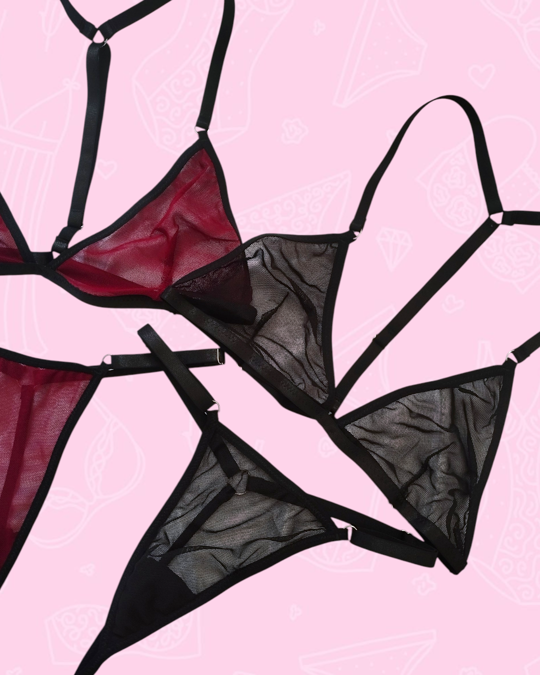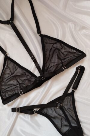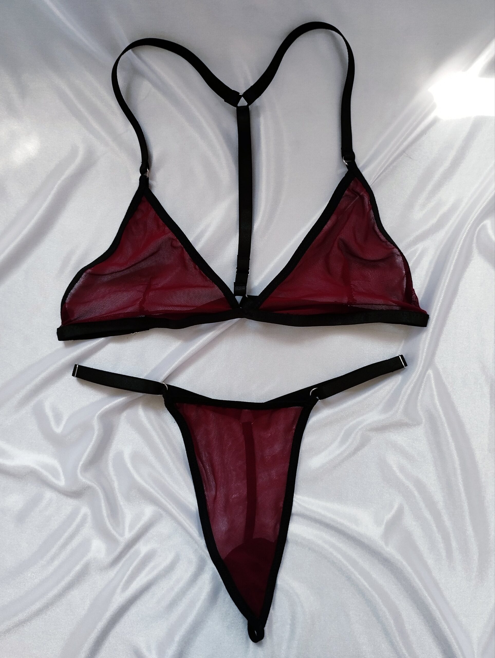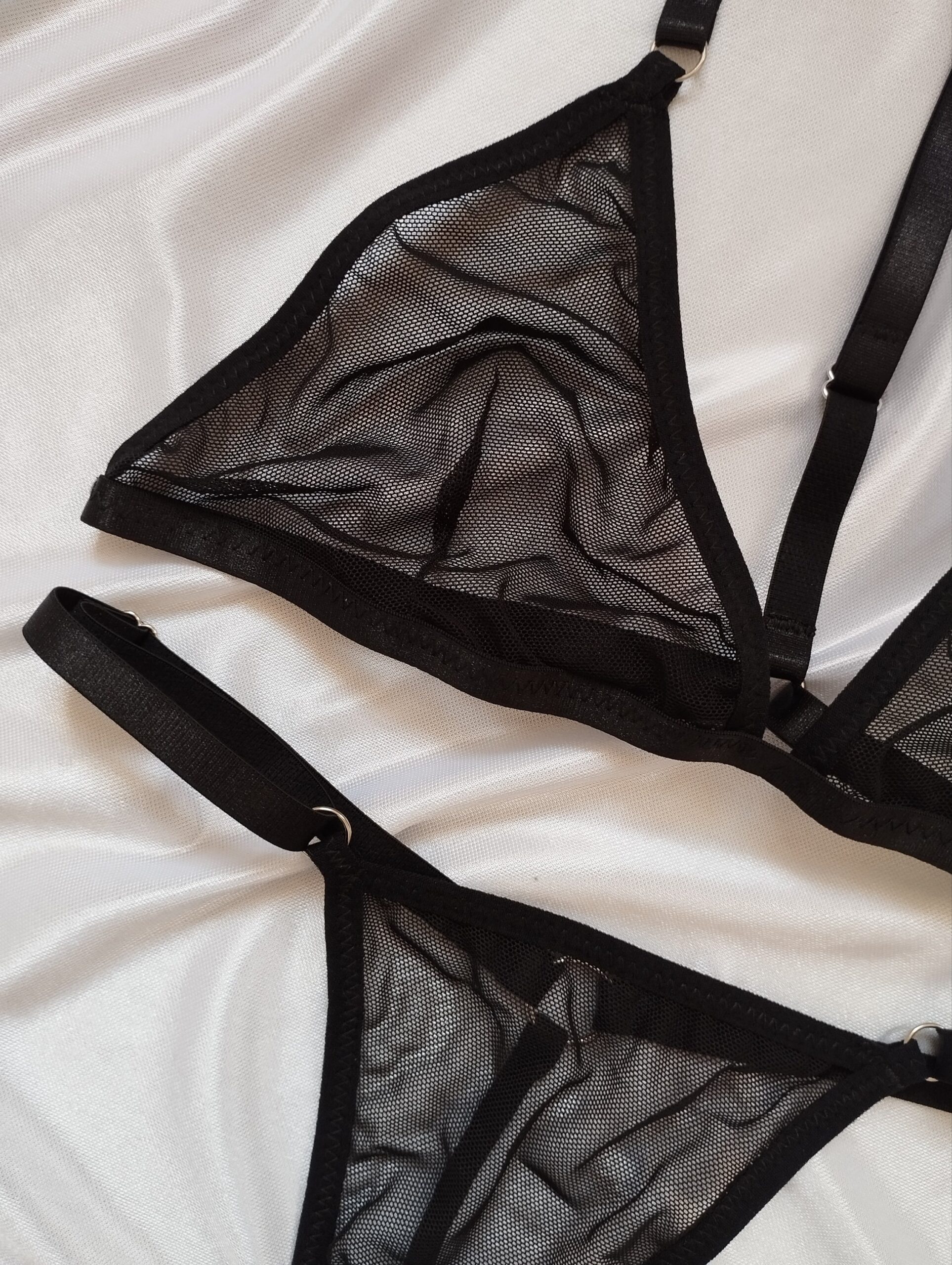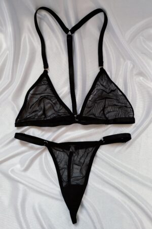 Lleva la sensualidad y comodidad a otro nivel ❤️. Set de lenceria en malla traslúcida tipo hilo🫶🏻 Todo ajustable de hombros, espalda, y cintura.
