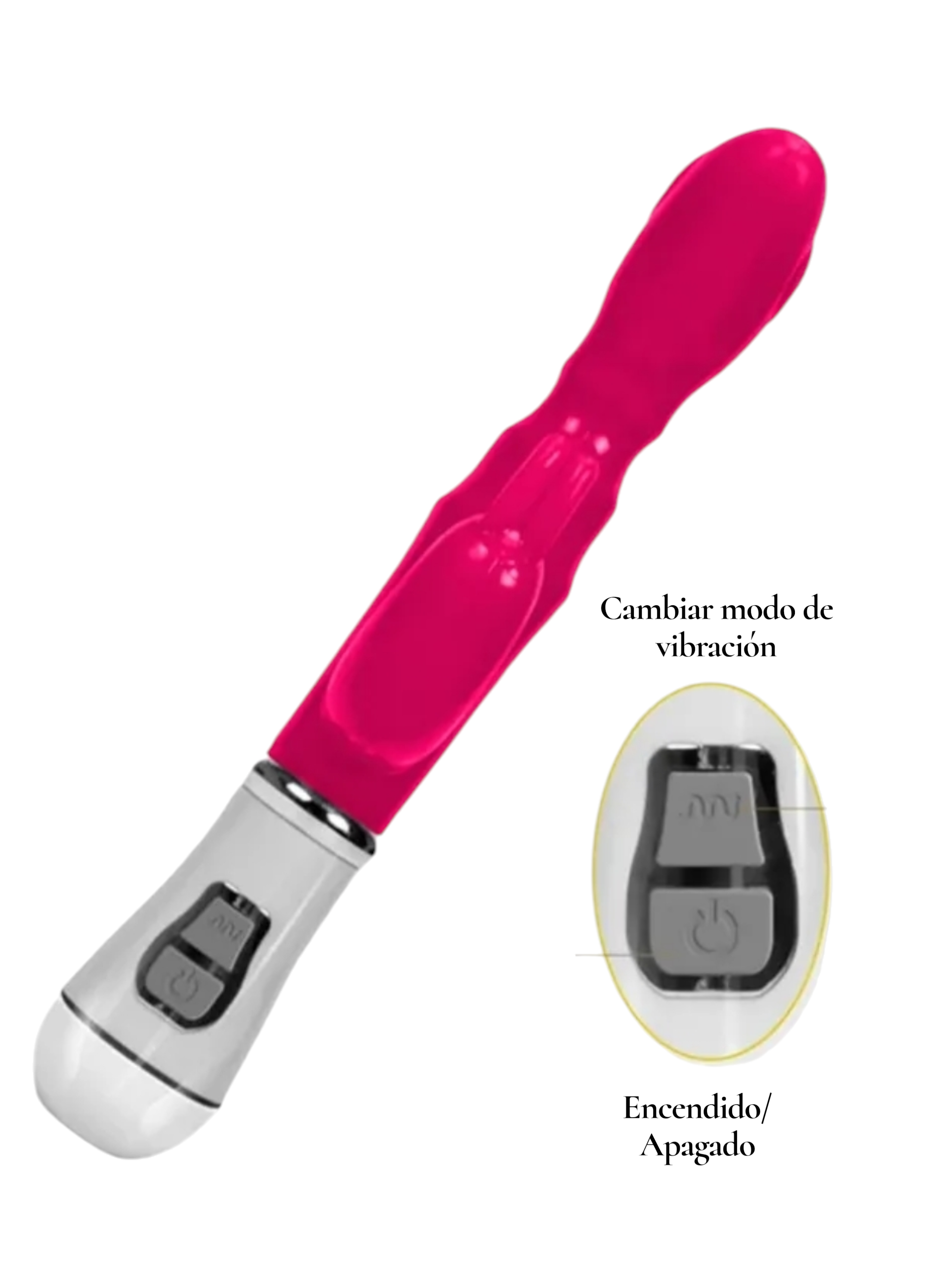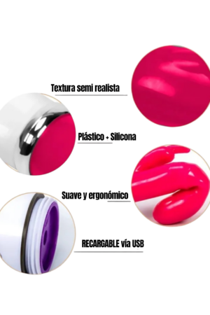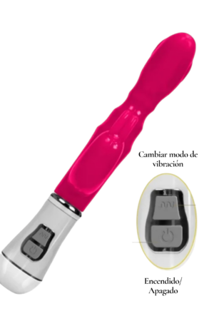 Vibrador de silicon con estimulador para clítoris o zonas erogenas cercanas en forma de «conejito» (que vibran también) Elaborado en silicon quirurgico tipo gel suave y con sensación realista, color fucsia brillante y suave, resistente al agua, con 10 velocidades.