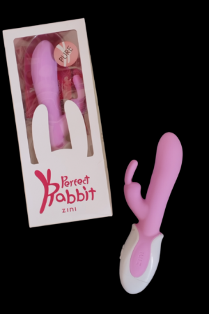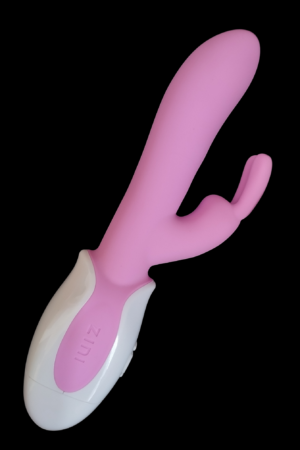 Vibrador de silicon con estimulador para clítoris o zonas erogenas cercanas en forma de «conejito» Elaborado en silicon quirurgico, resistente al agua, con varias velocidades. A baterias.